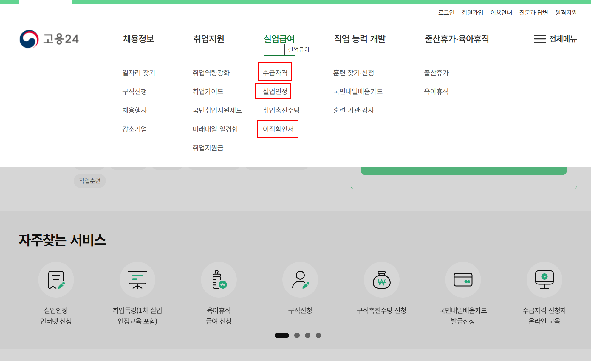 - 고용보험 사이트에서 구직신청, 사전교육 수강, 계산기 이용, 신청 내역 확인까지 전부 가능.