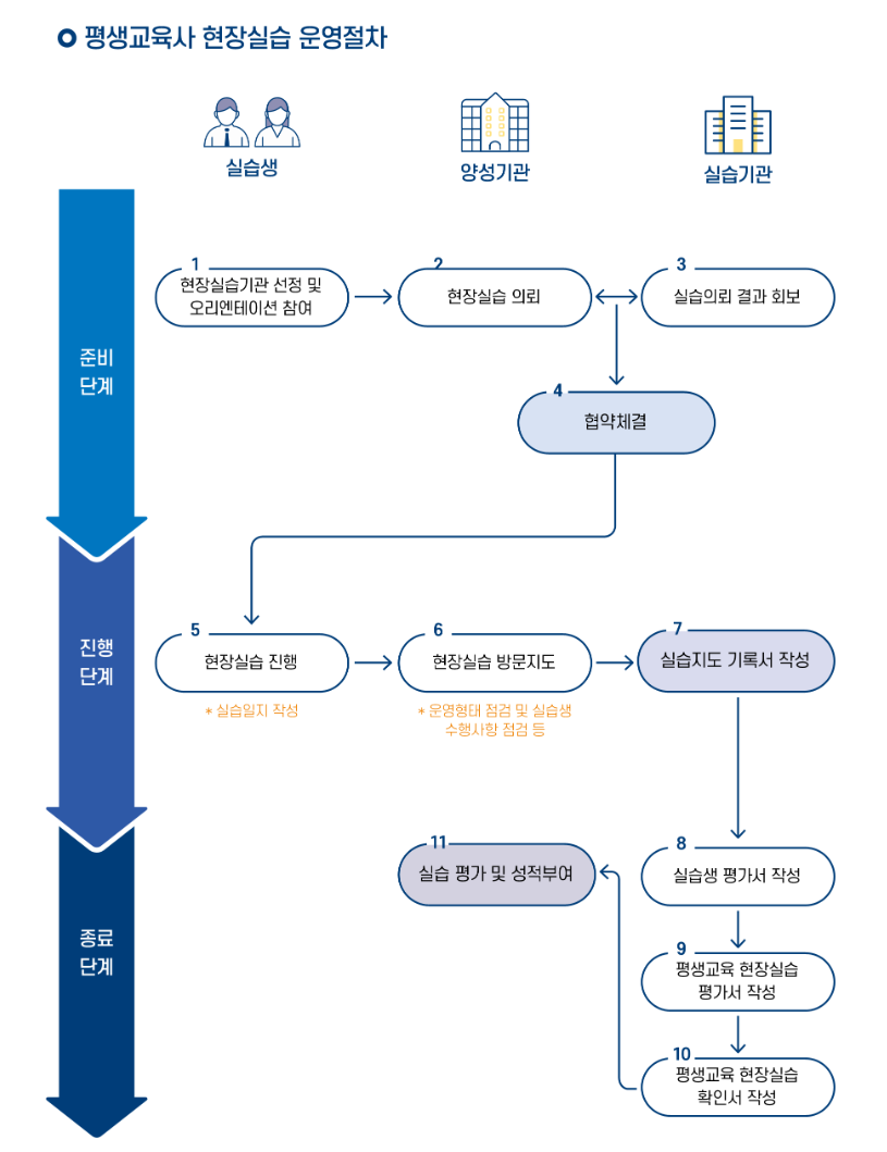 - 실습은 국가평생교육진흥원(NILE) 에 등록된 ‘평생교육사 실습기관’에서만 인정됩니다.